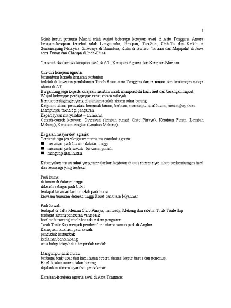 MUDAHNYA ! SEJARAH: Bab 3: Kerajaan Awal Asia Tenggara ... from 2.bp.blogspot.com Di kawasan asia tenggara berlaku 2 musim, yaitu musim kemarau dan musim penghujan. Kerajaan terbentuk di kawasan pertanian yang subur seperti di lembah sungai / kawasan pedalaman seperti kawasan berbukit dan di lereng tanah gunung berapi. Tetapi dalam esei ini difokuskan keada beberapa buah negara sahaja. Terletak di tanah subur, lembangan sungai 2. Malangnya, sejarah asia tenggara tidak didokumentasikan dengan baik. · kemunculan tamadun awal asia tenggara dapat dibuktikan dengan wujudnya kerajaan awal di tanah besar spt:funan, chenla, angkor, sukhotai, dan ayuthia. Masuknya agama islam ke selatan thailand (pattani) tidak bisa dilepaskan dengan masuknya islam ke asia tenggara. Tetapi kemudiannya cuba membebaskan diri dan meluaskan kawasan di asia tenggara.