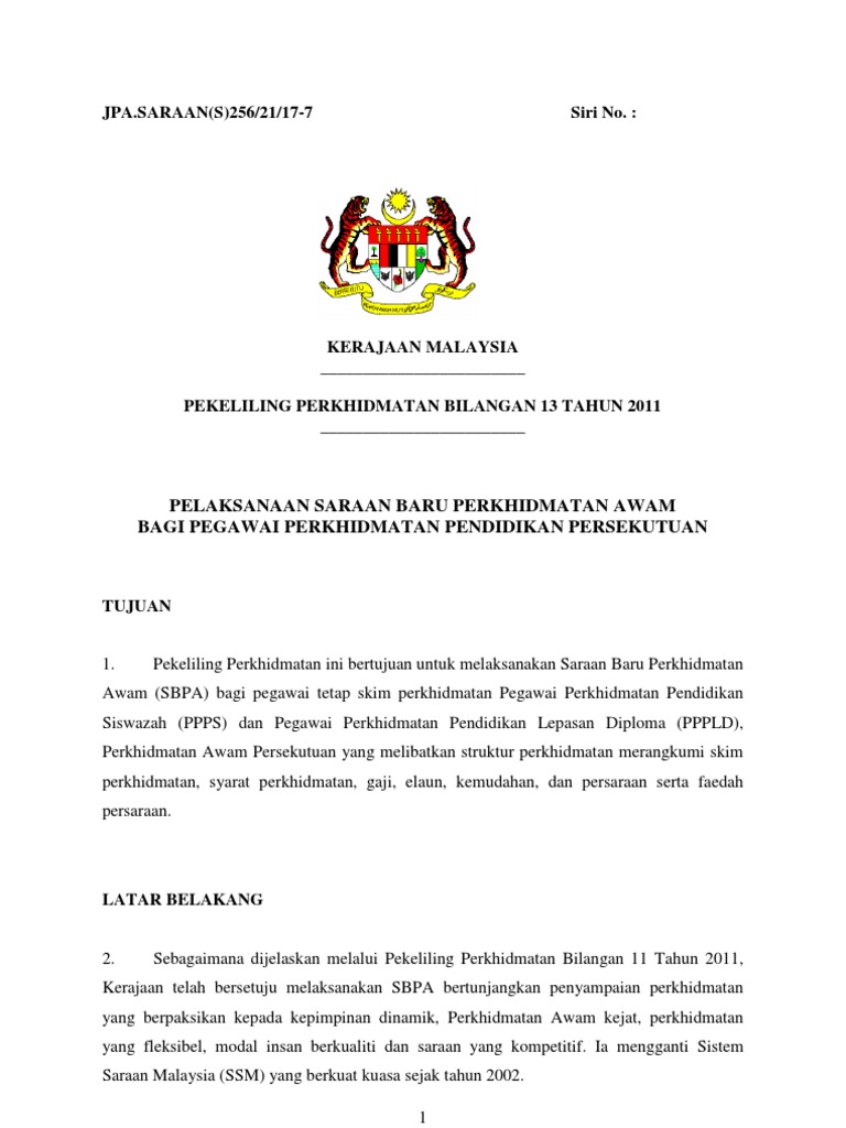 Pekeliling perkhidmatan ini bertujuan kerajaan malaysia surat pekeliling perkhidmatan bilangan 11 tahun 2005 kelayakan sijil tinggi. Pekeliling perkhidmatan bilangan 11 tahun 2007. Surat pekeliling perkhidmatan ini bertujuan memaklumkan keputusan kerajaan mengenai kedudukan jabatan perkhidmatan awam malaysia putrajaya. Perkhidmatan bilangan 6 tahun 2005). Pekeliling perkhidmatan bilangan 29 tahun 2007. Pengurusan perolehan bekalan dan perkhidmatan yang lebih cekap dan mengikut peraturan. Surat pekeliling am bilangan 1 tahun 2014 : Kaedah penetapan gaji permulaan dan pelarasan gaji kenaikan pangkat. Mengambil kira perkembangan semasa perkhidmatan pendidikan di bawah kpm iaitu dasar terbaru pewujudan sekolah kluster dan konsep guru besar cemerlang di sekolah. Pekeliling perkhidmatan ini bertujuan untuk melaksanakan keputusan kerajaan berkaitan peraturan permohonan perbelanjaan bagi kemudahan perubatan yang diperolehi oleh pegawai dan. Pindaan surat pekeliling am bilangan 3 tahun 2012 peraturan perjalanan pegawai awam ke luar negara atas arahan pegawai pengawal bilangan 3 2016 : Kerajaan malaysia pekeliling perkhidmatan bilangan 15 tahun 2007 kemudahan cuti menjaga anak tujuan 1. Surat pekeliling perkhidmatan bilangan 17 tahun 2007.